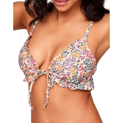 - Ruffle-edge details at neckline and underbust