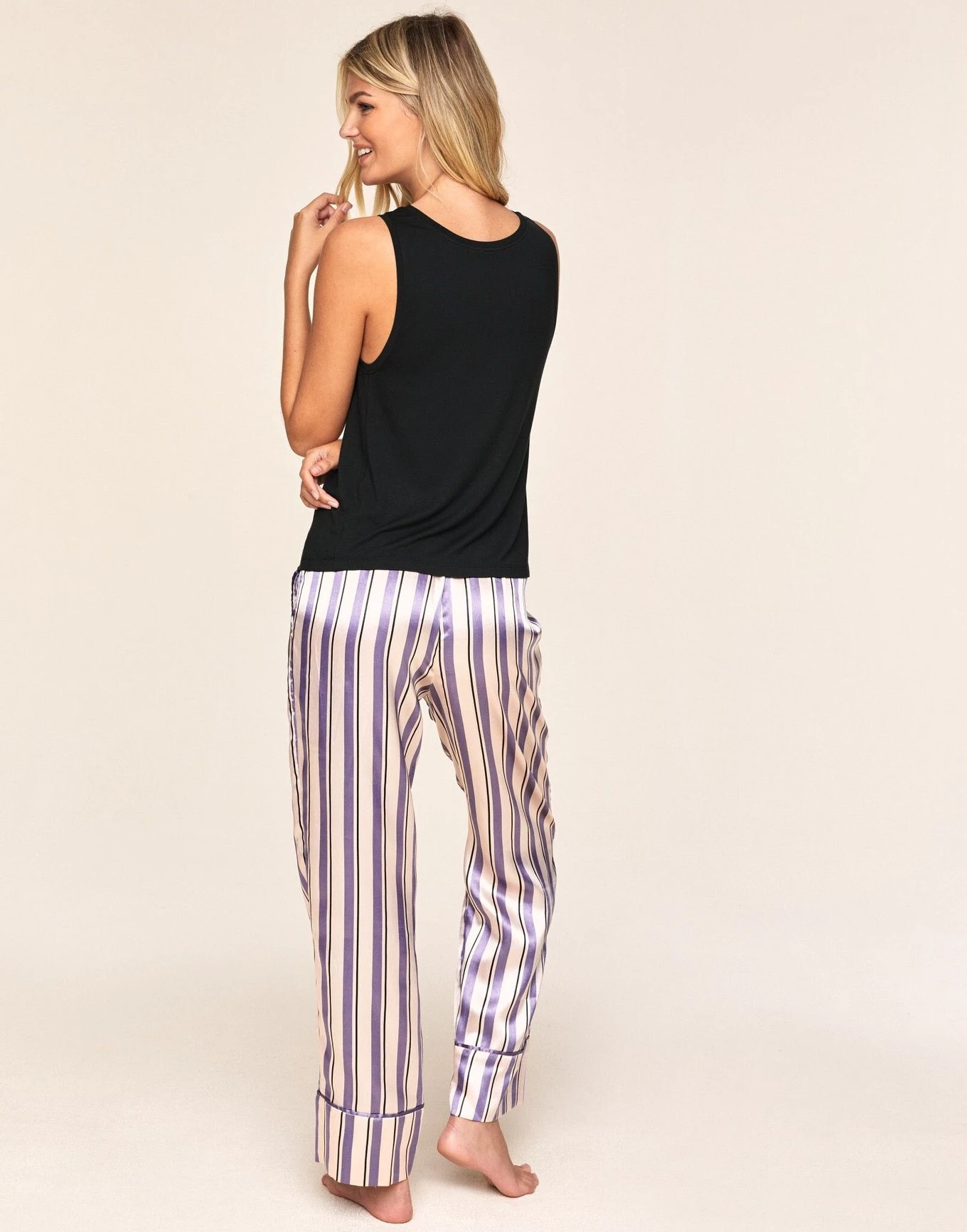 Ready to go on a cozy getaway? Pack your bags, and don’t forget to bring the Alania PJ set with you! Whether you’re lounging in your PJs, cooking & baking in your PJs, or cuddling up in your PJs, this one’s the ultimate definition of Adore Me & Chill. With a stripe-printed, smooth satin PJ pant paired with an easy, soft knit tank, you’ll be all set and totally chic for your retreat. See Alania Plus for more sizes.