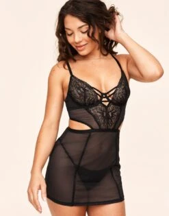 Now you can wear a babydoll without looking like a babydoll! The black lace Alicia is here. Slip into this unlined babydoll featuring Tiny ribbon straps and bow details. This airy set is luxurious with an ultra-romantic vibe. Layer it well and wear it out or keep it light and wear it to bed!