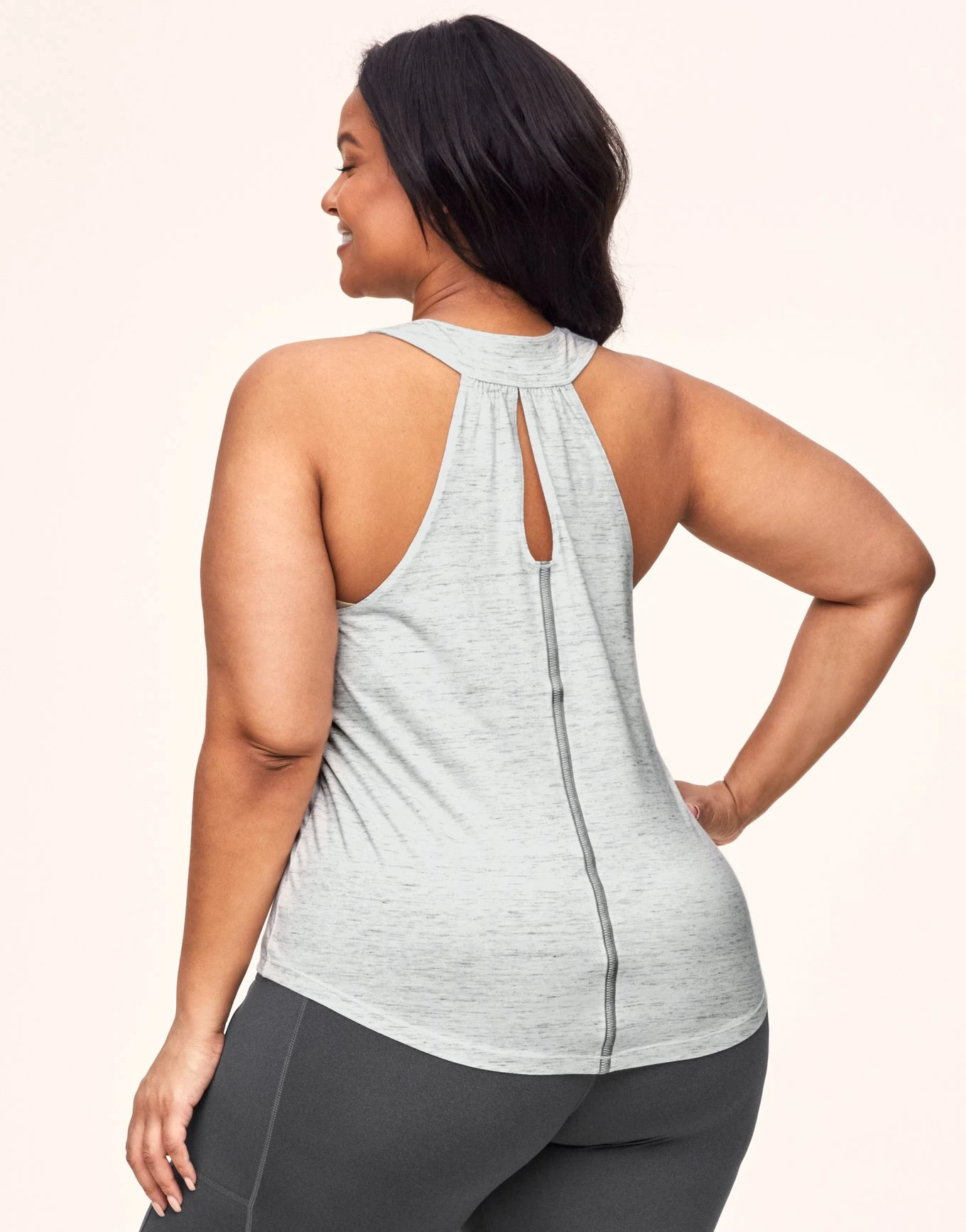 Go on a hike or run for the hills or in our easy, super-soft heathered workout top featuring a reflective strip at the back that’ll have people spotting you without you missing a beat. (Available in sizes XS–4X!)