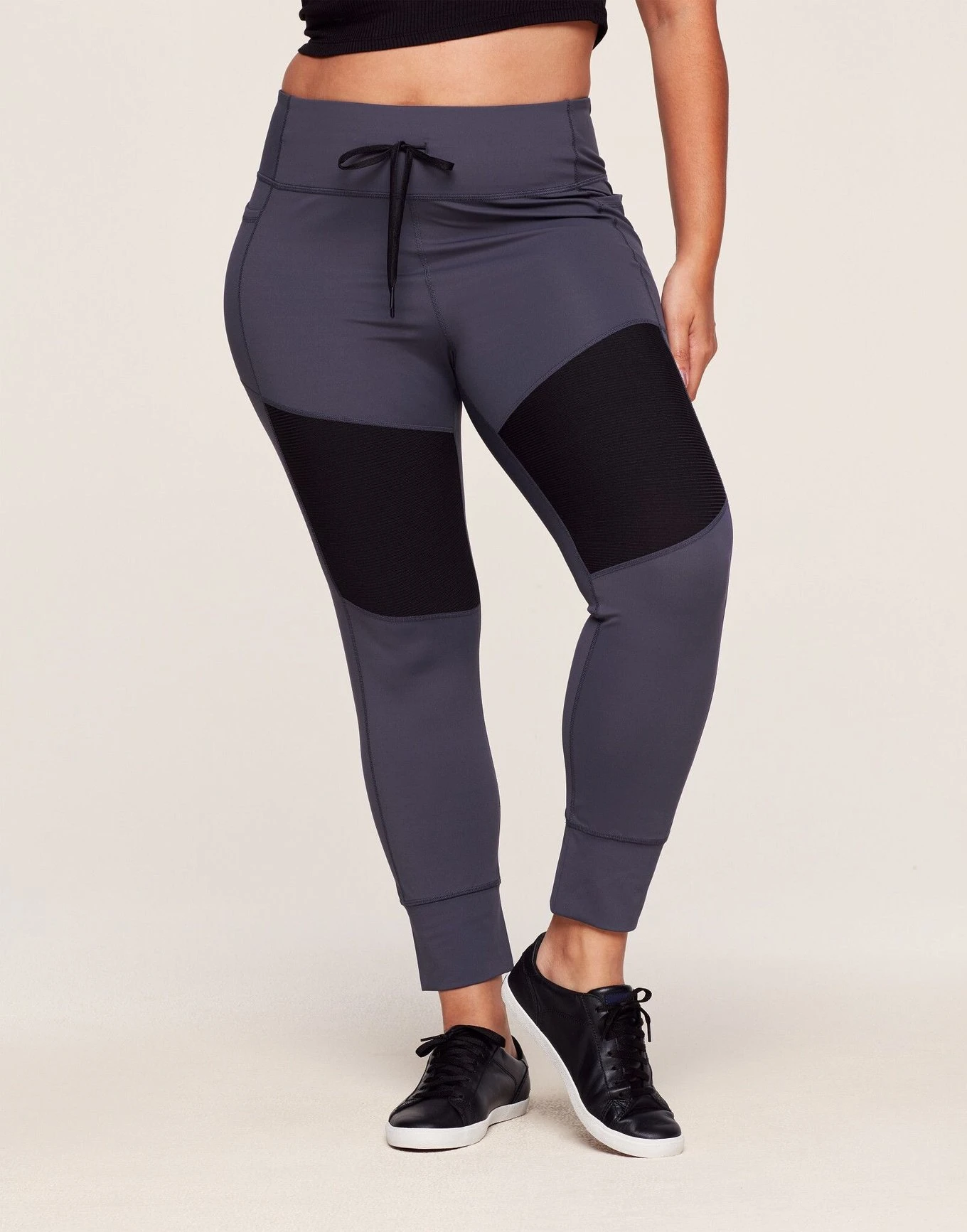 Sleek yet relaxed. Modern yet casual. Stretchy and flattering. This super-smooth high-waist design in chic blue—feat. colorblocked rib details and an adjustable drawcord—fits like a glove while keeping you cool, comfy & supported, always. Perfect for chilling or running errands.