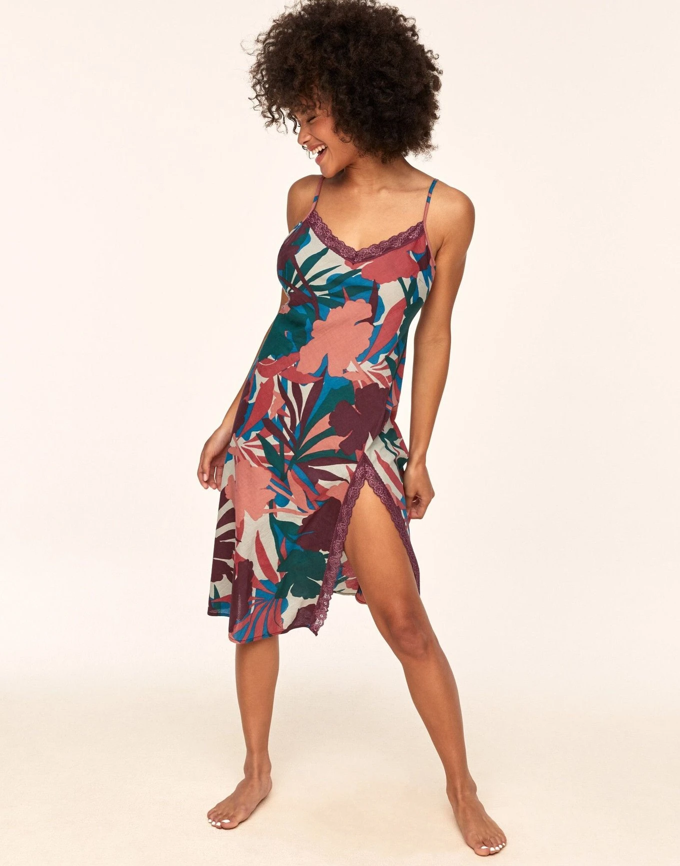 Tropic like it’s hot! Our fresh, new botanical print is here to transport you to faraway islands filled with endless palm trees—and in our opinion, you won’t be mad about it. Accented with flirty lace-trim details and finished with a flattering high-cut slit (go ahead & show a little leg!), our comfy cotton Analise slip will hands down become your casual-yet-chic, go-to one-piece for spring, summer & beyond. (See Analise Plus for more sizes.)