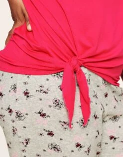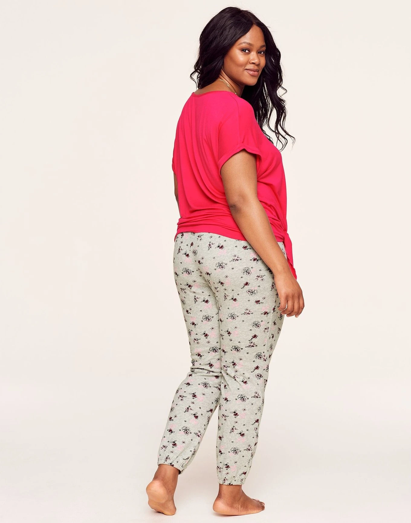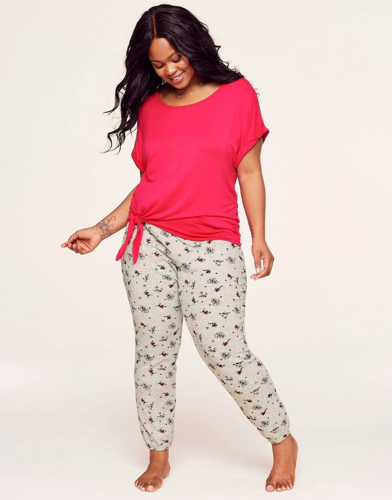 Feelin’ fresh! Give your sleepwear wardrobe an update with this essential PJ set designed for 24/7 lounging. This casual hot-pink tee with a cute draped-knot detail pairs with the comfiest sweatpant sprinkled with roses to put a spring in your step. It’s like this pair was specially handpicked for you. (See Anna for more sizes!)