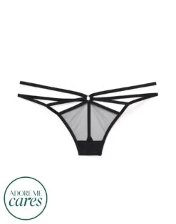 The Ashlyn G-string is a revealing panty that leaves little to the imagination. This black G-string is made from recycled nylon and elastane for a sustainable style with a sheer mesh-front panel. (Available in sizes XS-XL.)
