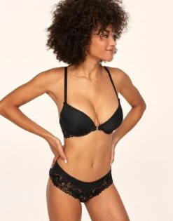 We’ve refreshed one of our bestsellers! Super-smooth cups meet our new, light & breathable Signature Lace in a supportive racerback design. Perfect underneath racerback tops or layered with your fave open-back tees, this sweet everyday style in classic black is down for it all! Simply hook the bra in the front, pair it with the matching cheeky or thong and your best outfit, and you’re all set! (See Celebrena Contour Plus for more sizes.)