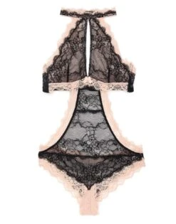 Let the festival fun begin! This plunging high-neck bodysuit is here to steal the show and top the charts with its gorgeous layered lace details in contrasting black & rose colors and sexy keyhole & side cut-outs designed to show off your figure.