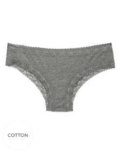 The Clara cheeky is the perfect everyday panty. This low-rise style is made from a cotton blend fabric and features lace trim around the waist and legs. Choose from a variety of colors to mix and match with your favorite bras! (Available in sizes XS-XL.)