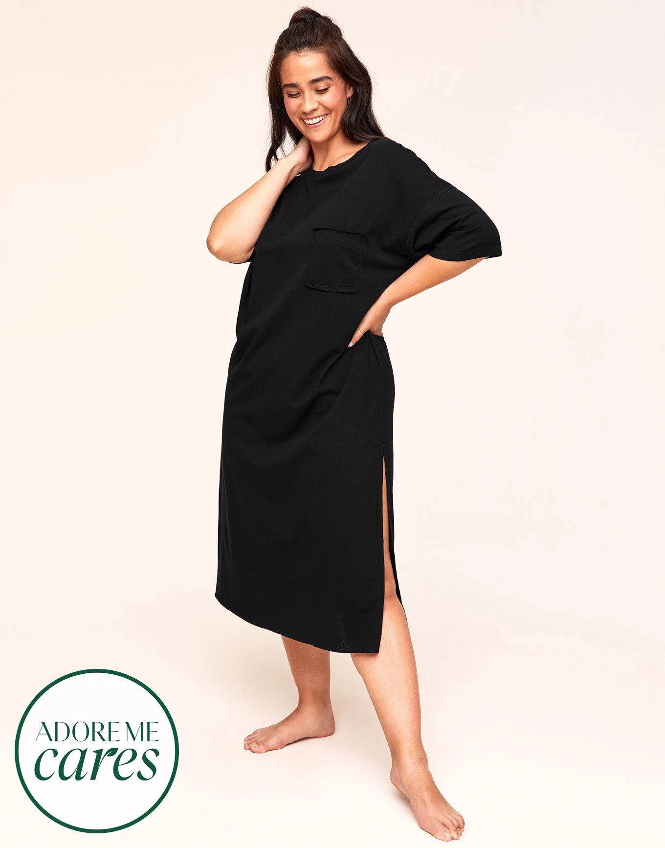 Sleep, lounge & hang out in style in our essential knit sleepshirt (aka, our favorite T-shirt dress!) made of recycled polyester as well as CYCLO® recycled-cotton material that saves energy & resources by not using any water or chemicals during the manufacturing process. (See Devyn for more sizes.)