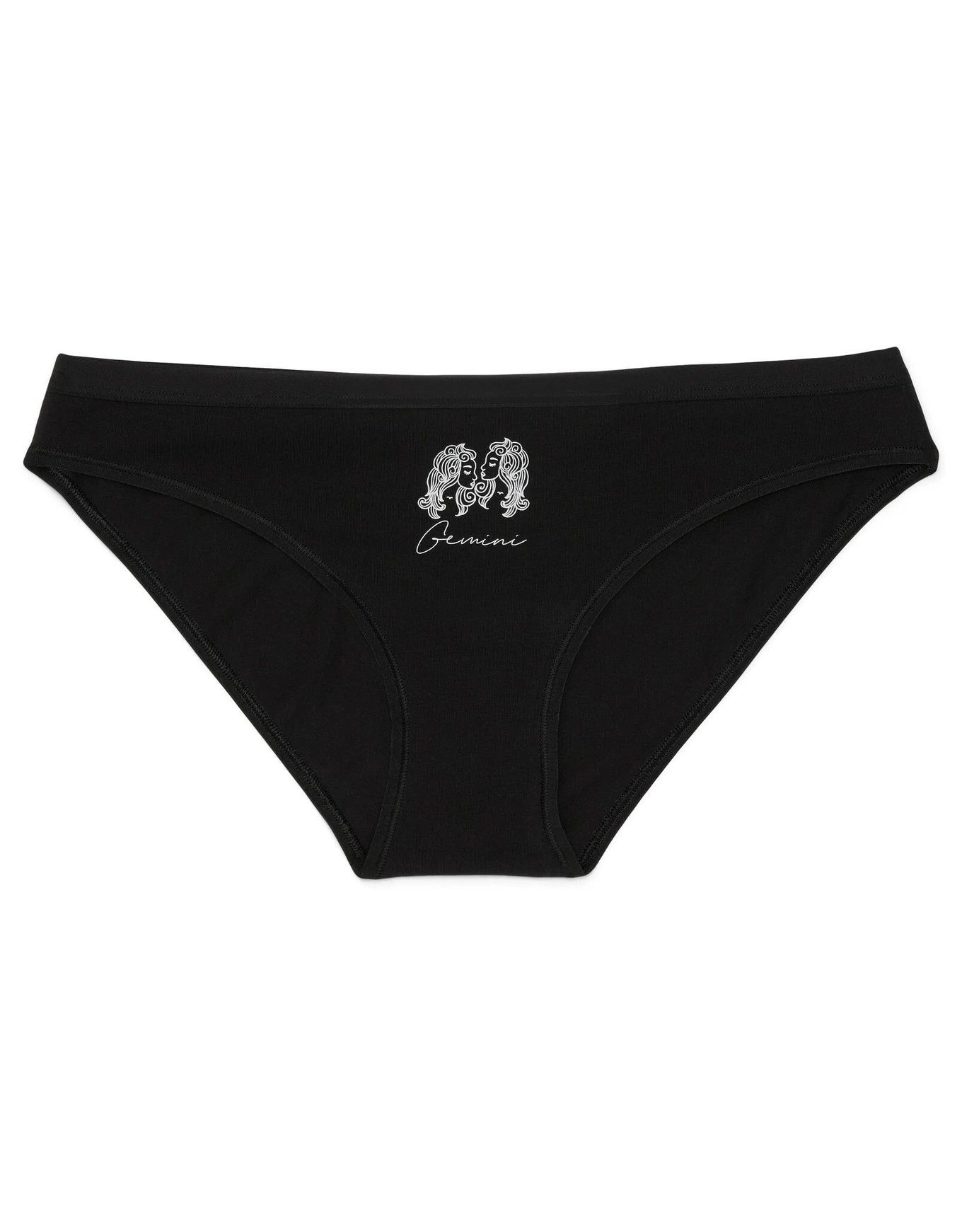 These printed cotton bikini panties have a comfortable stretch waistband and leg openings. The black Gemini print is perfect for everyday wear. (Available in plus-sizes 0X-4X.)