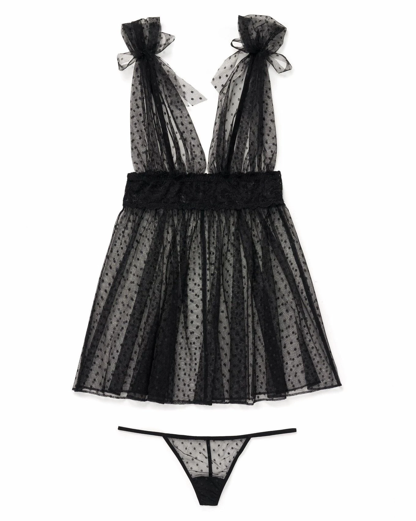 Ooh la la! Fancy yourself back in the ‘20s, and dress like you have a powder room and a boudoir with the sweet & sheer Elise in jet black. Featuring flirty tulle & dot-mesh deets, this statement babydoll is made for special days & nights perfect to pair with jazz music, some wine, and really, whatever your heart wants. (Shameless selfies, anyone?!) See Elise for more sizes.
