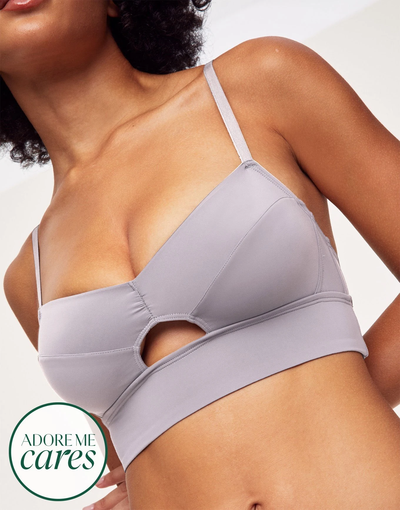 Modern, wireless & soooo comfy! Certified by the Global Recycled Standard (GRS), this smoothing longline style in gray is made with Mipan® Regen™ recycled nylon fiber, which comes from pre & post-consumer waste that conserves resources and reduces energy. (See Fatima Unlined Plus for more sizes.)