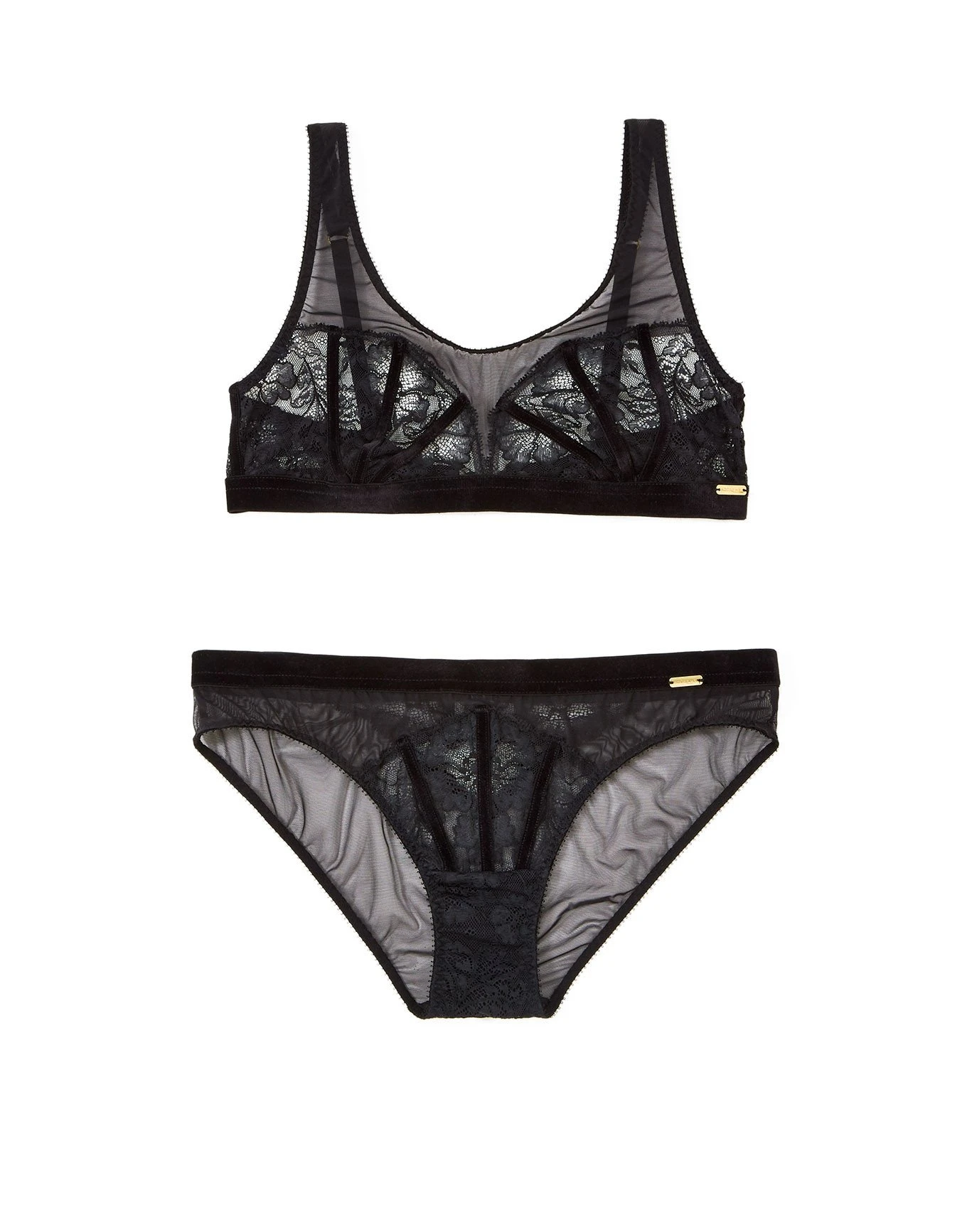 Elegant and modern, the Gisselia is the the perfect answer for any occasion- think of her as the bra version of your little black dress. The scoop neck bralette features lace paneling at the bust and velvet elastic placement that is soft and supportive, letting you look sophisticated but leaving little to be imagined. Pair this with the matching high waisted panty for a luxe feel, or try the flirty cheeky.