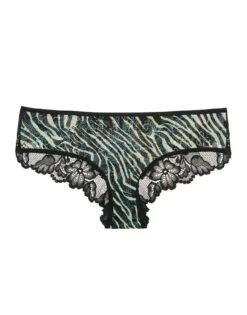 These mesh cheeky panties have a printed front and a lace back. The animal print on these black panties will make you feel wild and sexy. (Available in sizes XS-XL.)
