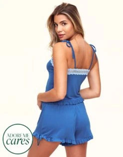 Update your PJ drawer with our comfy-meets-charming matching cami & shorts. Isabella’s ECOVERO by Preferred viscose fiber rayon-knit threads feel super-soft on the skin, while her sweet ruffles & bow-tied shoulder straps let you play the flirt.