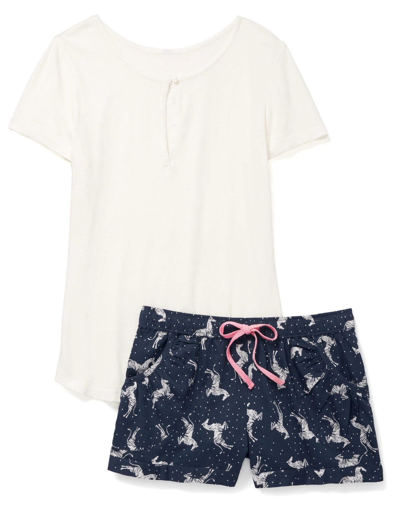 This is what sweet dreams—and lounge goals—are made of! Not only is Jacquelyn a supersoft essential made of 100% cotton, she also brings the fun with a cool zebra print. A day in the life with her involves sweet pancakes, TV binges, new books & the best naps. P.S. Choose your vibe on top: Button up or let loose a little—it’s totally up to you! (See Jacquelyn for more sizes.)