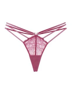 The Kimberly is an ultra-flattering, bold purple lace thong—its ultra-sexy strappy sides and dainty heart hardware accentuate all your best features. (Available in plus-sizes 0X-4X.)