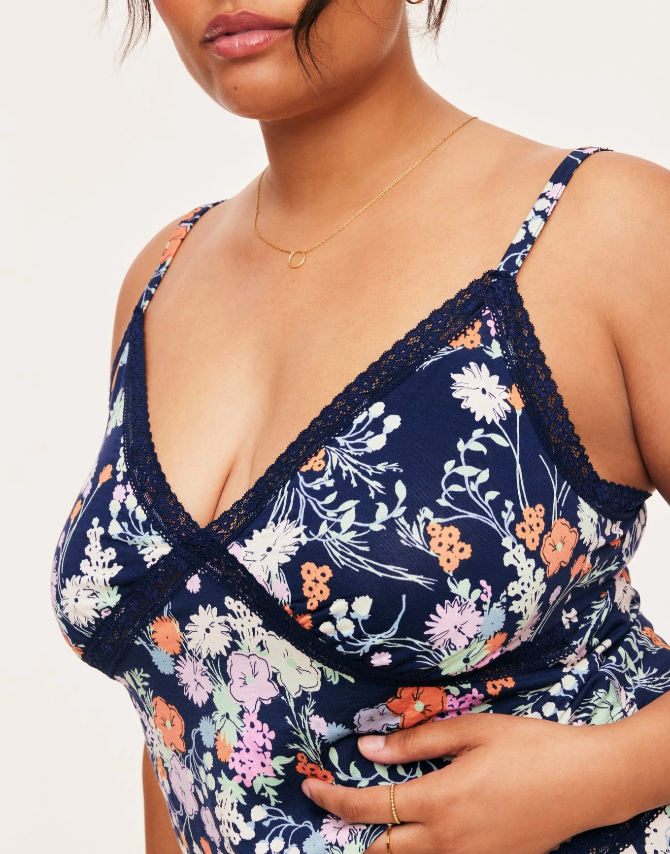 Lace trimmed neckline and under bust