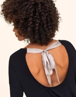 Say โHelloโ to our absolute favorite Lyanna! The luxurious lavender satin bow with open back detail elevates this cozy lounge set to help you take it to the next level. Feel both comfortable and cool in this long sleeve and short set.