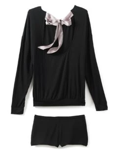 Say โHelloโ to Lyanna- one of our favorite lounge looks! The elegant lavender satin bow with open back detail elevates this set to the next level. Feel fabulous while staying super comfortable in this long sleeve and short set.