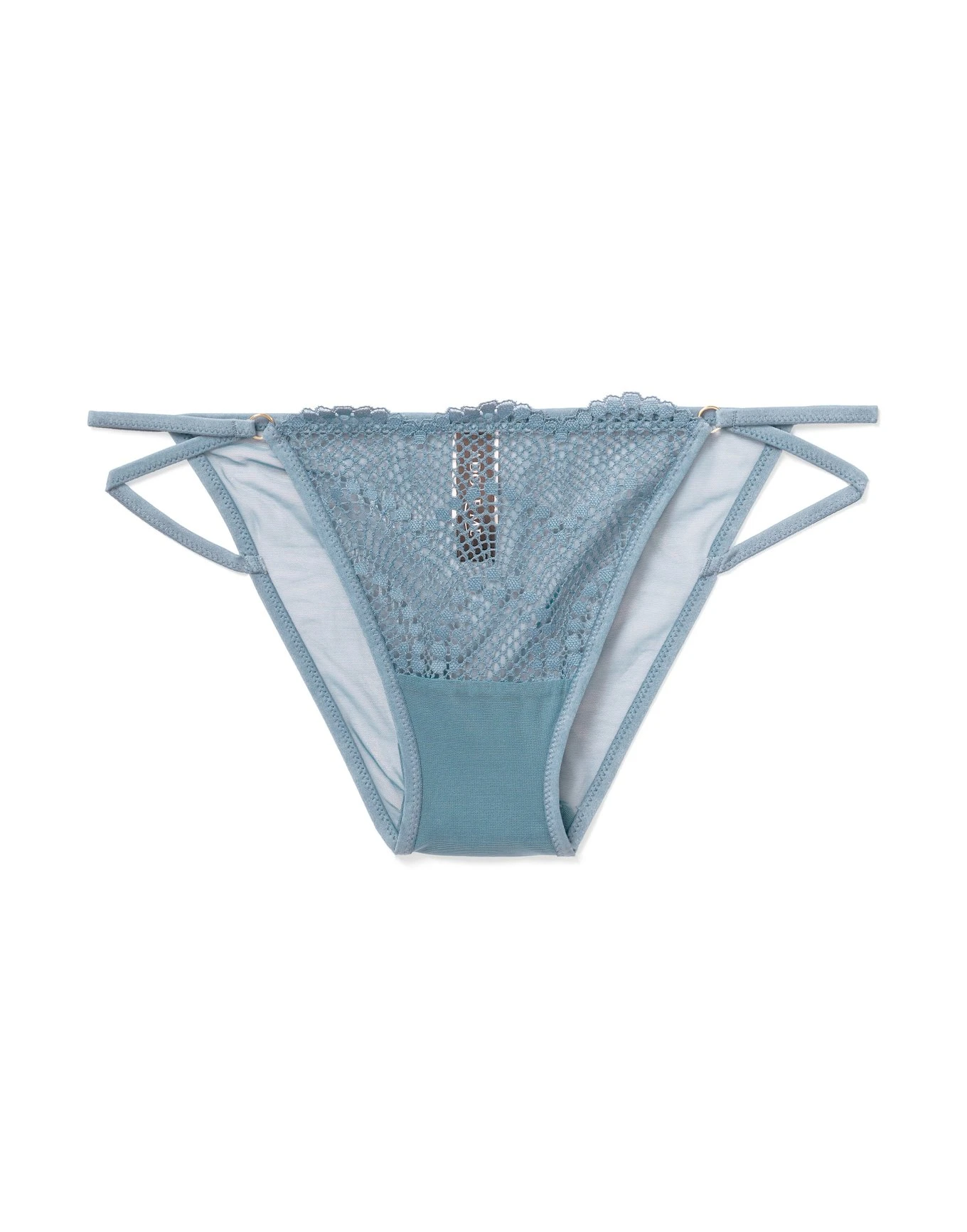 This lace string bikini in a robin’s egg blue is perfect for showing off your playful side. The Margaritte features a strappy side design and ring details at the front for a touch of fun and flirty. (Available in sizes XS-XL.)
