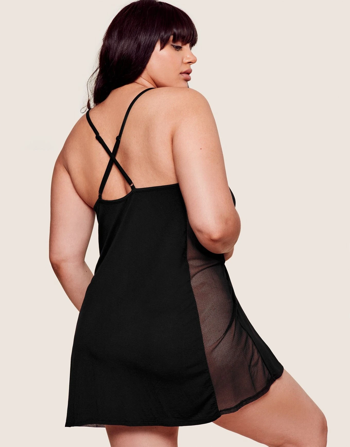 A bit sweet. A bit sexy. A whole lot comfy! Introducing Monika: the easy, breezy & sultry summer slip in your fave classic black color—featuring trendy, smooth mesh sides and a draped cowl-neck design to show some skin and accentuate your figure. Yup: Name a better nighttime loungewear look. (We’ll wait!) See Monika for more sizes.
