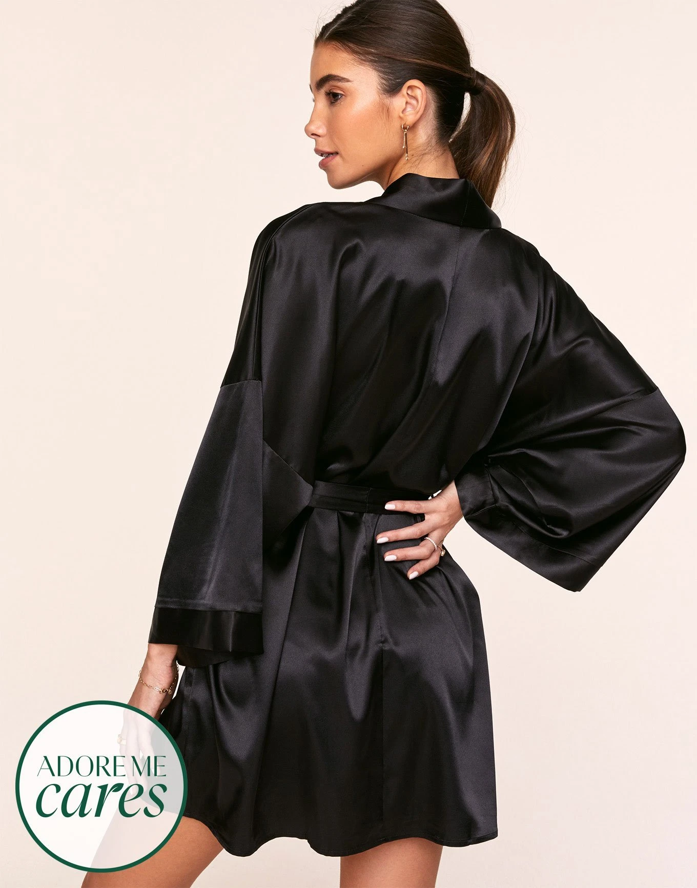 Wrap yourself up in a smooth and sexy classic black robe, perfect for every occasion! (See Romina Plus for another size.)