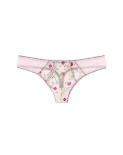 A pretty printed thong with colorful floral embroidery, the Rosa thong adds a touch of romance to your everyday look. (Available in sizes SX-XL.)