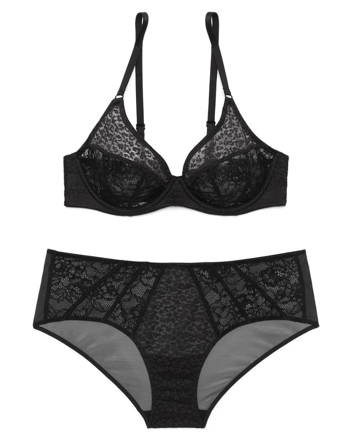 Roxana mixes two of our bestselling lingerie attributes—floral lace and leopard lace!—for the first time ever to create a one-of-a-kind bra your wardrobe’s never seen before. Crafted with sheer unlined demi lace cups in classic black that support and enhance your natural shape and complete with a matching hipster panty, Roxana will easily become your essential set you’ll reach for time & time again. Optional: Let the bra peek out from underneath your fave tops or blazers for a bold night out. (See Roxana Unlined Plus for more sizes.)