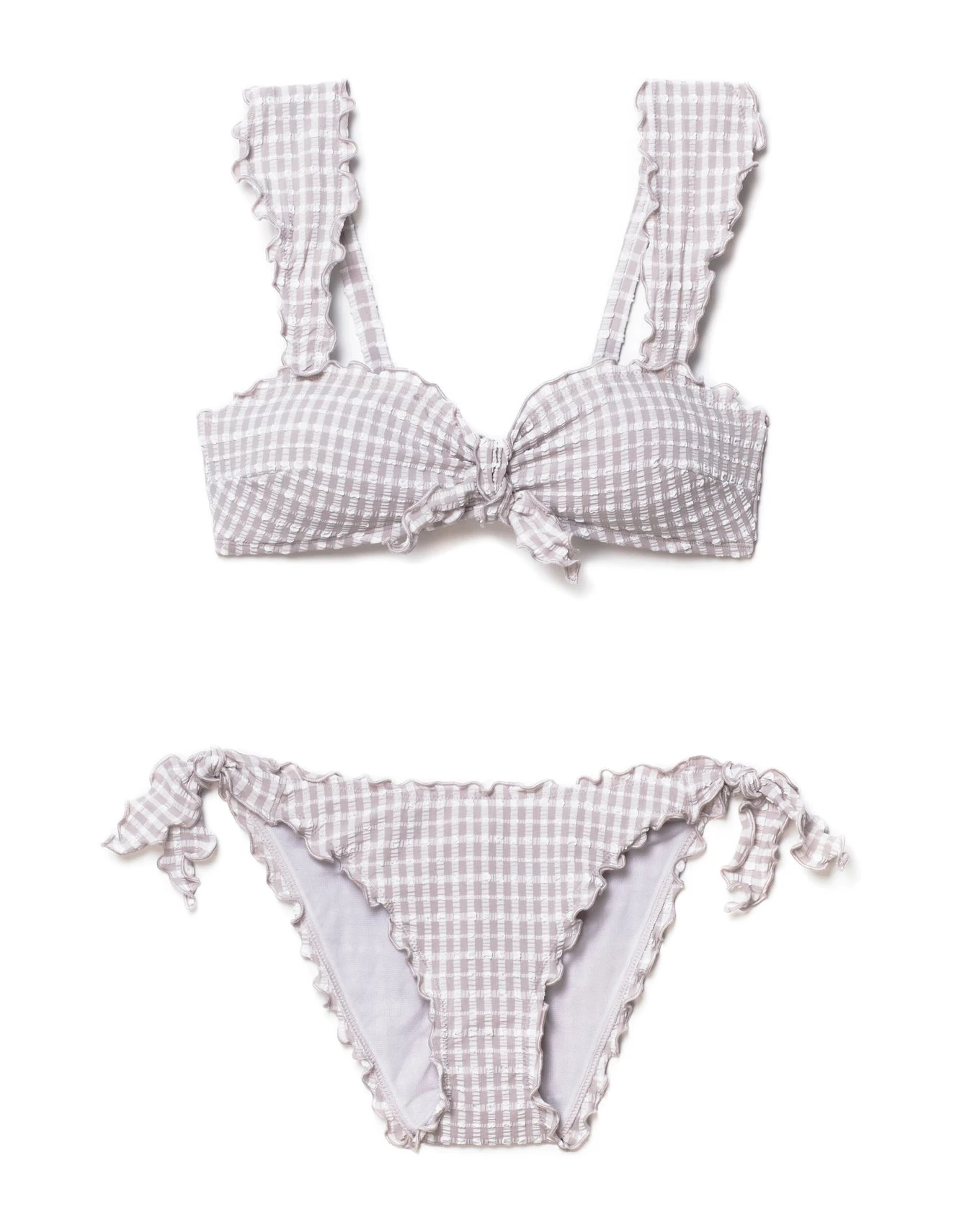 Ultra-flattering lettuce hems and timeless gingham prints are making this two-piece bikini a statement piece for the books. Can you guess what our forever go-to beach look is?