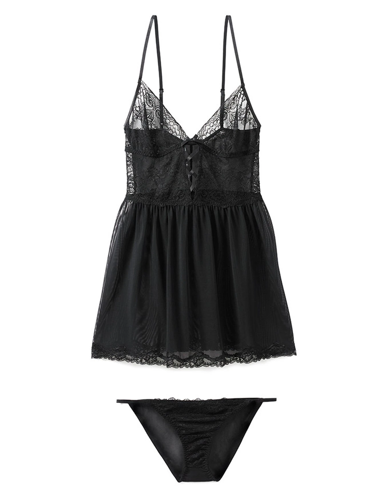 Brace yourself for this seriously sexy lace up babydoll. Black lace cups and corset lacing detail down the front adds some extra oomph to the mesh skirt and lace trim hem. So sexy yet comfortable, you can wear whenever you feel like or for however long you like! Pair with the matching bikini to complete your seductive look.