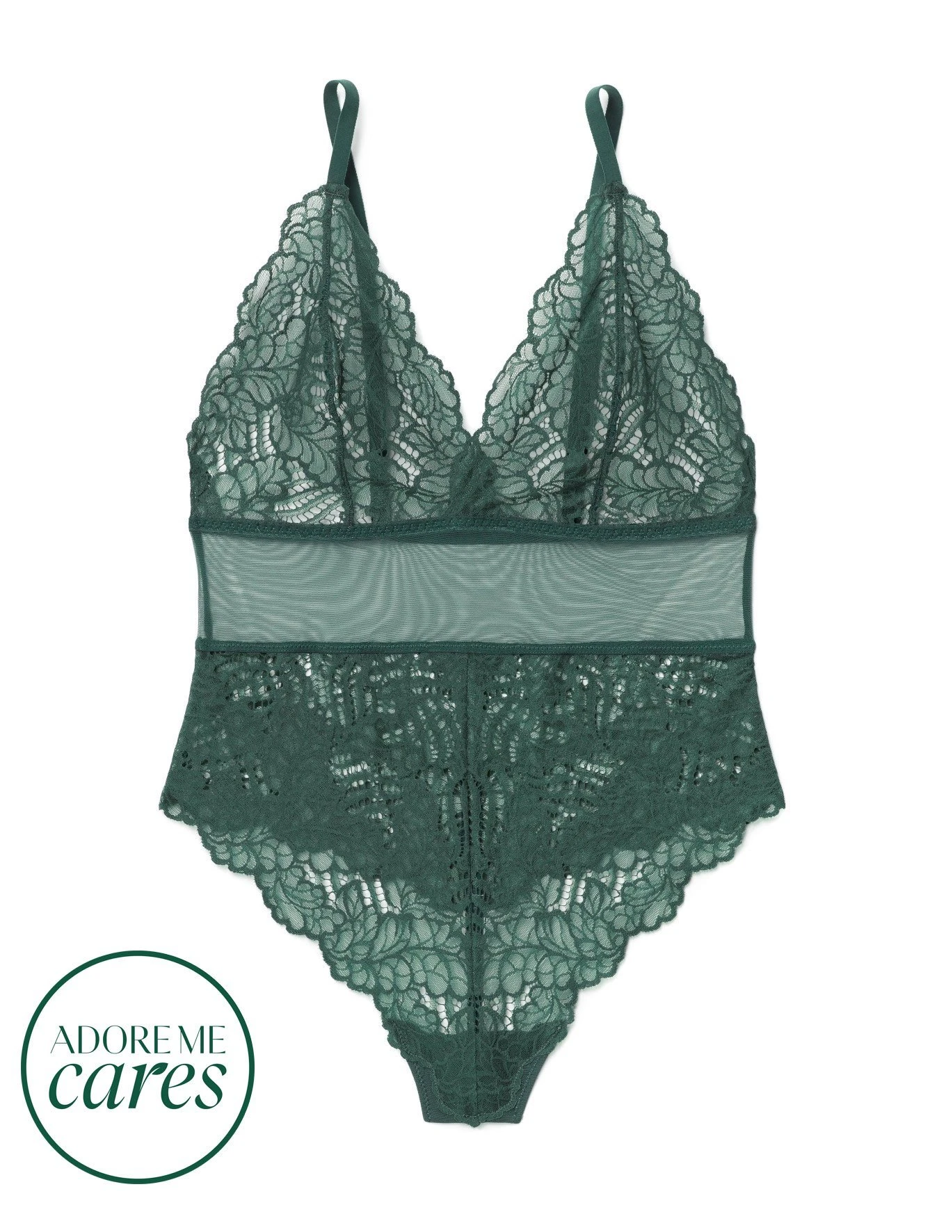 Watch out—you might just fall in love with this jungle-green lace bodysuit. Our super-flattering design features unlined triangle cups, mesh midriff panelling, and fully adjustable straps. The best part? She’s all held together with a G-string back that will make you feel extra sexy. Trust us, this one’s a keeper. (Available in XS–XL.)